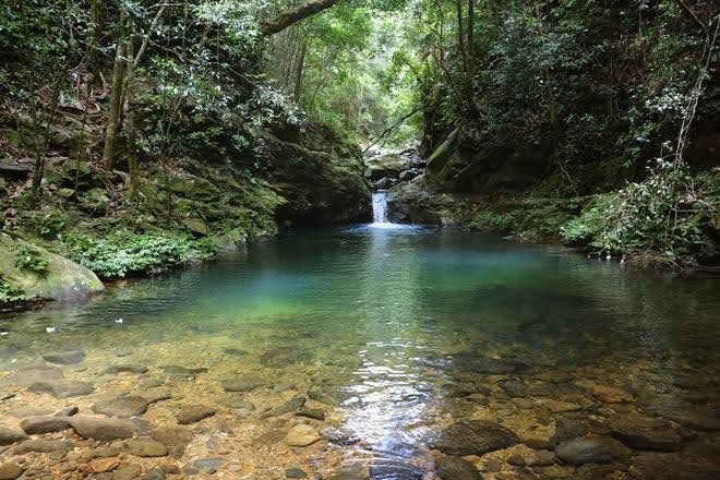 Arrivo sulla cima del parco. Breve trasferimento in veicolo e proseguimento della camminata attraverso una fitta foresta di bambù fino a raggiungere un fiume. Percorso lungo il fiume, che si divide formando piccoli laghi naturali.